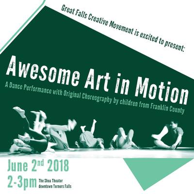 Some of the dances you will see on June 2nd include a multi-media re-telling of the favorite children's story, Stella Luna, a stunning solo to Pop singer Sia's, "Move Your Body" by Turners Falls Resident Bellasky Picone-Louro, a dance to David Bowies, "Life on Mars", choreographed by Awesome Art in Motion veteran Sofia Pawell, and a dance based on a collaboratively written poem on the subject of- what else... Dance! See the amazing and unique imaginations of Franklin County children come to life through movement!