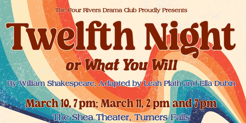 Tickets are now on sale for the Four Rivers Drama Club’s production of Twelfth Night! Join us for Shakespeare's madcap romantic comedy of gender bending, mistaken identity, and practical jokes, all set in the 1960s music scene.