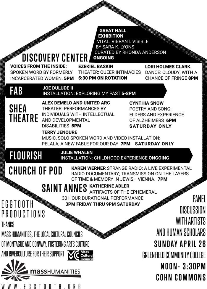 The Radical Interconnectedness Festival offers art of all kinds created by artists addressing the concerns of marginalized communities. Come experience theater, music, installation, dance, poetry, video, etc. all presented in downtown Turners Falls in a variety of alternative venues like storefronts, repurposed churches, the Discovery Center, the Shea Theatre - all in walking distance.
