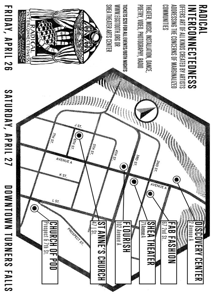 Presented by Eggtooth Productions. the radical inter-connectedness Fest! The Radical Interconnectedness Festival offers art of all kinds created by artists addressing the concerns of marginalized communities.