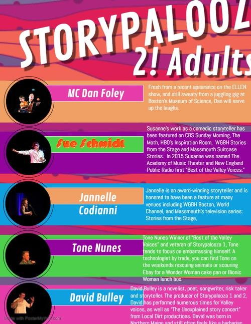 A night of raucous, raunchy, hilarious, poignant, heartfelt stories by some of the best storytellers on the east coast. Hosted by Dan Foley, a Boston area juggler, comedienne, performer extraordinaire and performed by four amazing storytellers, this will be a night you pee yourself laughing, but one you will think about in quiet moments for months afterward. Most storytelling concerts and contests have themes. The theme for this evening is “Adults only” which certainly means don't bring the kids! But also means wear your thickest skin. But don’t worry. It will be dark enough so they won't see you blush.