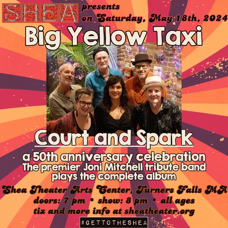 #GETTOTHESHEA on Saturday 5/18 for a celebration of Joni Mitchell’s seminal album Court and Spark, performed by the premier Joni Mitchell tribute band Big Yellow Taxi The Band!