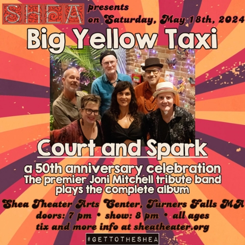 The Shea Theater is pleased to present an evening of Big Yellow Taxi, a tribute to the timeless music of Joni Mitchell, on Saturday, May 18th. They will be celebrating the 50th anniversary of Joni Mitchell's seminal 1974 album Court and Sp