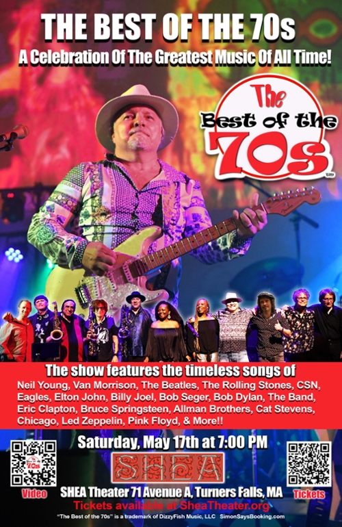 The Shea Theater is pleased to present the show “The Best of the 70s” a celebration of the Greatest Music of All Time! Featuring Dizzyfish and the Uptown Horns on Saturday, May 17th.