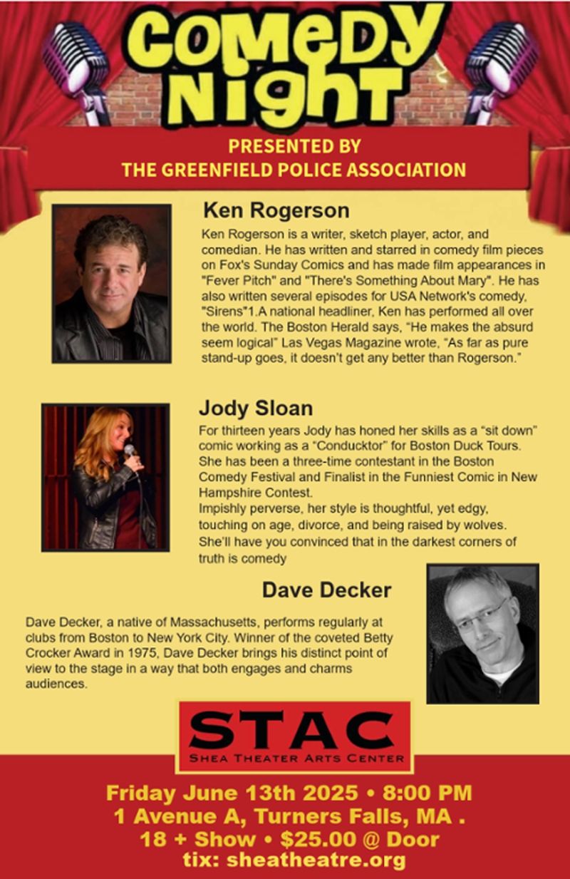 The Greenfield Police Association presents a line up of Comedians at the Shea Theater. 18+